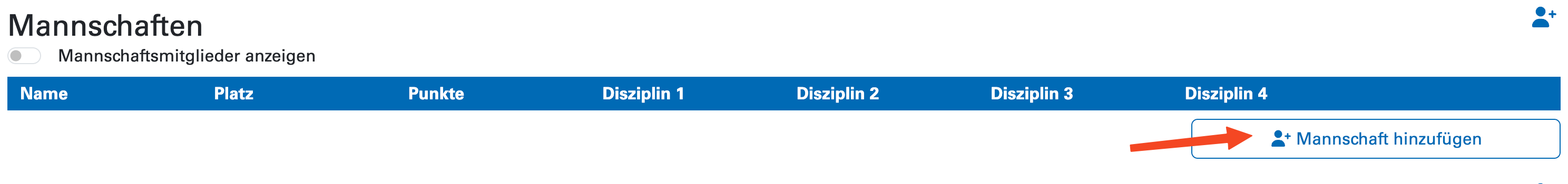 Im Bereich Mannschaften kann per Mannschaft hinzufügen eine neue Mannschaft angelegt werden.