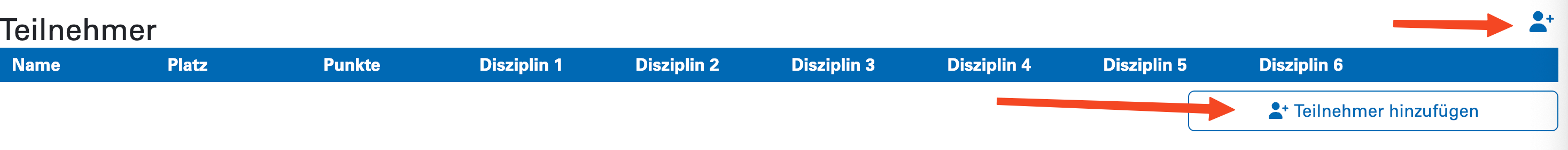 Zur Meldung von Einzelsportler*innen kann im Abschnitt Teilnehmener per Teilnehmer hinzufügen ein*e neue*r Teilnehmer*in hinzugefügt werden.